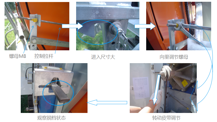 檢查如Ⅰ、 Ⅱ檔進入鎖定桿尺寸都很大,則向里調節(jié)控制拉桿上的M8螺母,使脫檔行程縮短。進入尺寸很小則向外調節(jié)。