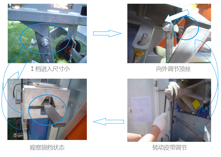 轉動傳動皮帶使噴水行車舉起,檢查關閉架上的螺栓進入鎖定桿( Ⅰ檔3~5毫米, Ⅱ檔2~3毫米)后需脫檔。 |