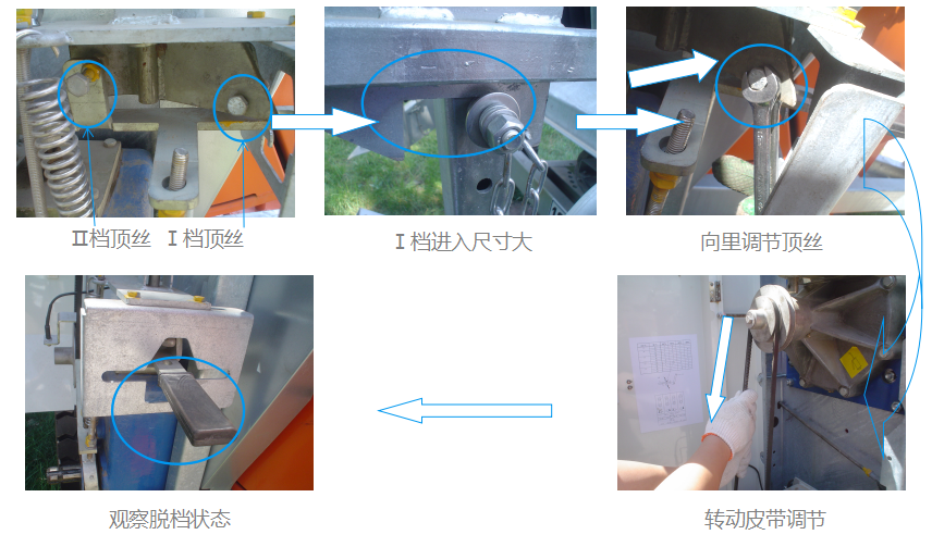 反復調節(jié),直到關閉架上螺栓進入鎖定桿后( Ⅰ檔3~5毫米, Ⅱ檔2~3毫米)都能順利脫檔。 |