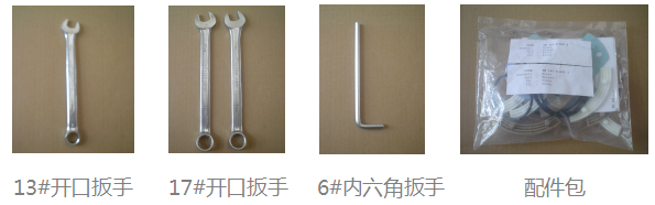 所需工具及物品:13#開口扳手、17#開口扳手2把、6#內(nèi)六角扳手、配件一包