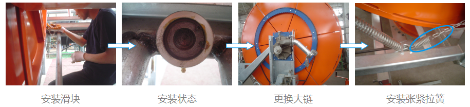 安裝滑塊,更換大鏈,安裝張緊鏈輪拉簧。