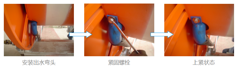 安裝出水彎頭,緊固螺栓。 |