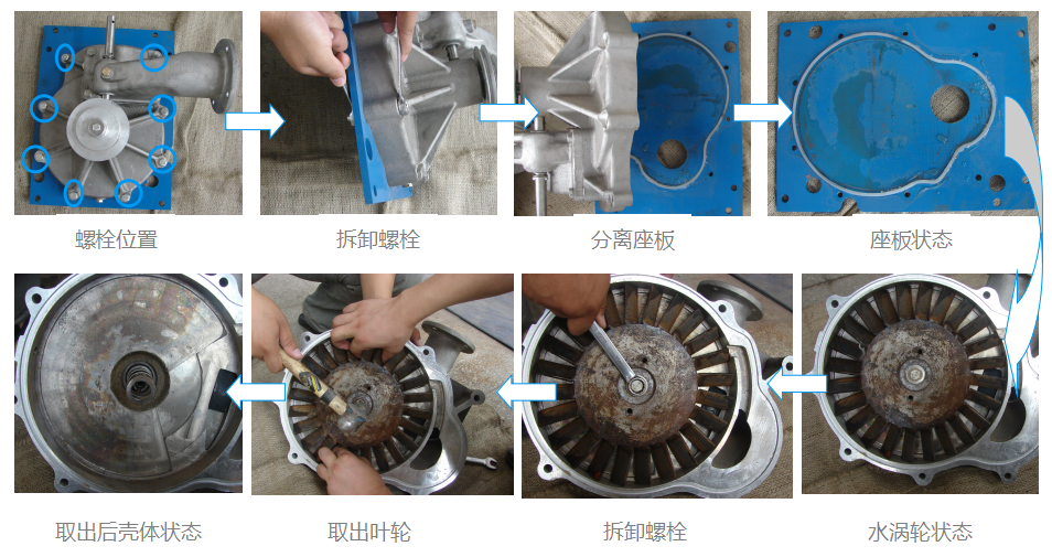 拆下固定水渦輪座板的螺栓及與水渦輪相連的部件 |