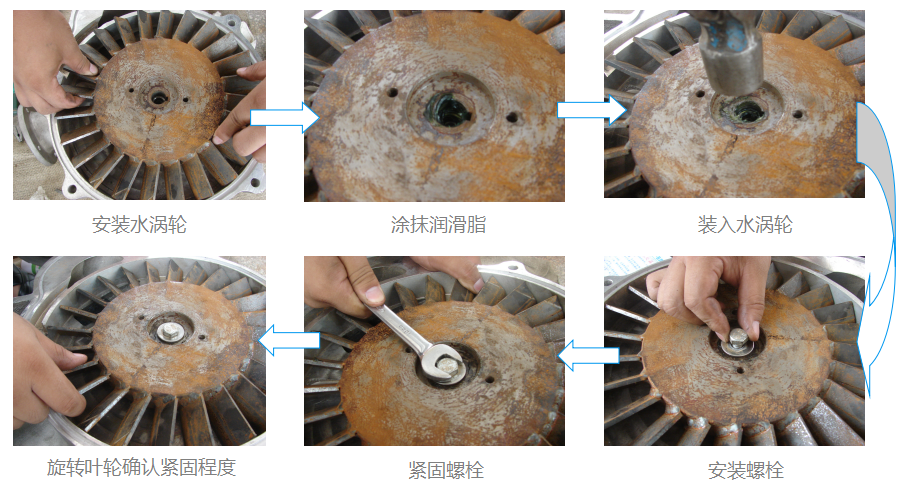 安裝葉輪,緊固螺栓。