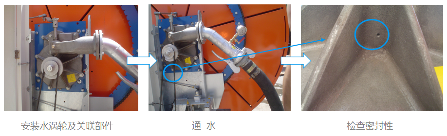 安裝水渦輪及其相連部件,通水檢查密封性。 |