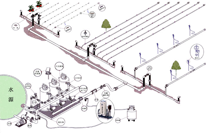 保護(hù)裝置可以隨時監(jiān)測灌溉系統(tǒng)、水源、施肥系統(tǒng)、過濾系統(tǒng)、控制系統(tǒng)等出現(xiàn)的問題,并發(fā)出警報;